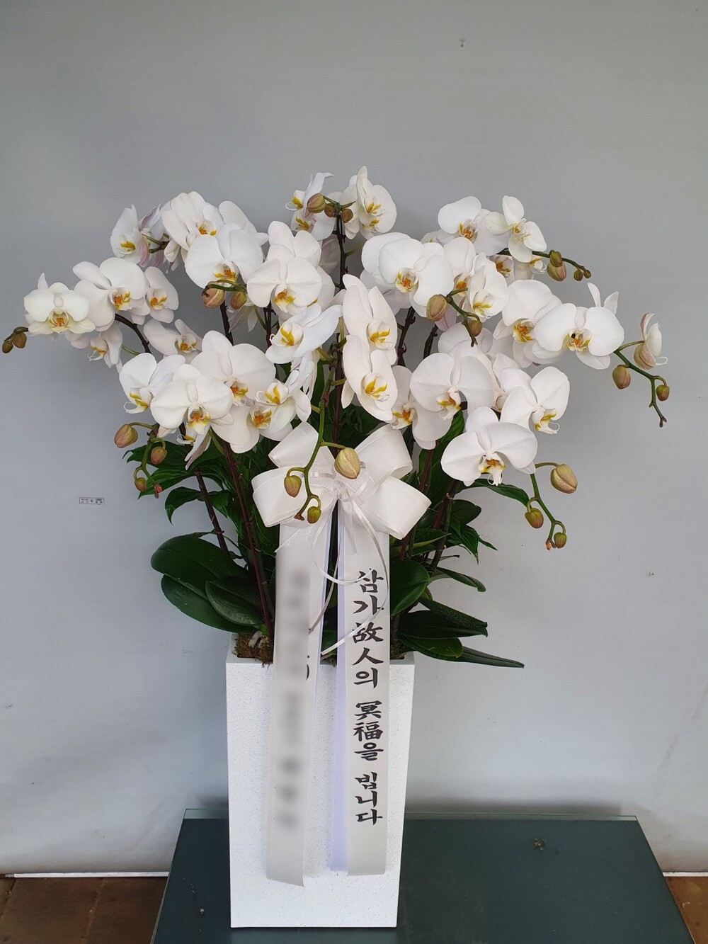 화분과 꽃의 색상 모두 화이트로 통일하여 근조화환 대신 보내실 수 있습니다.
