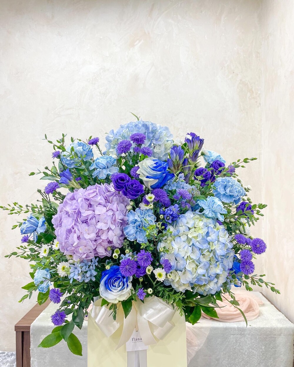 - 주요 꽃 : 블루수국, 리시안셔스, 카네이션 등