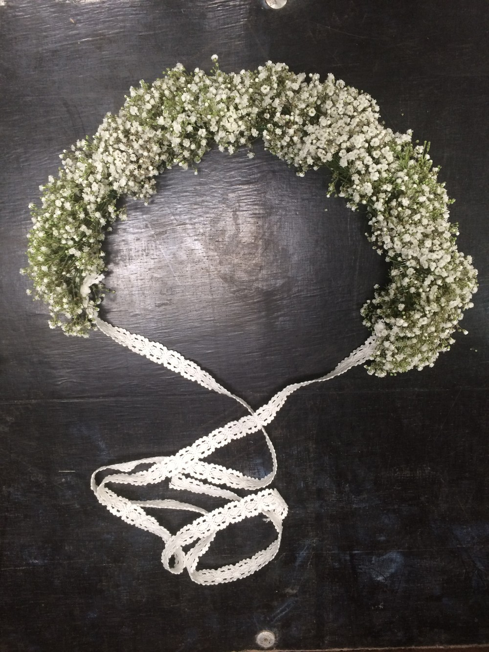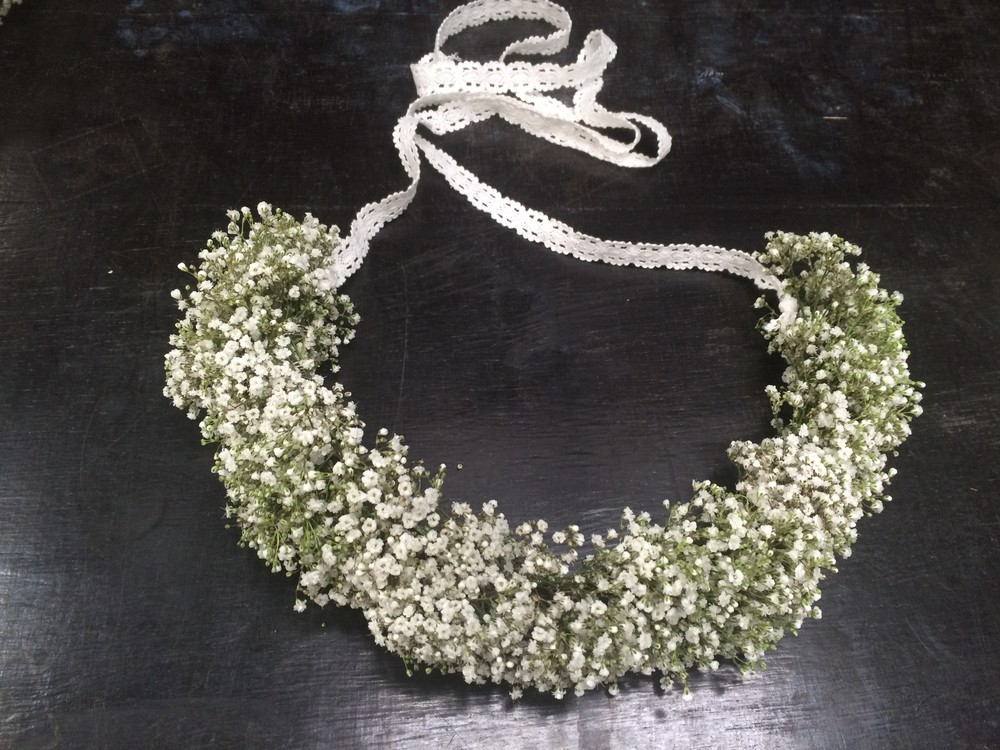 화이트컬러의 안개꽃으로만 디자인 되어 청순함과 동시에 사랑스러움이 가득한 화관입니다.