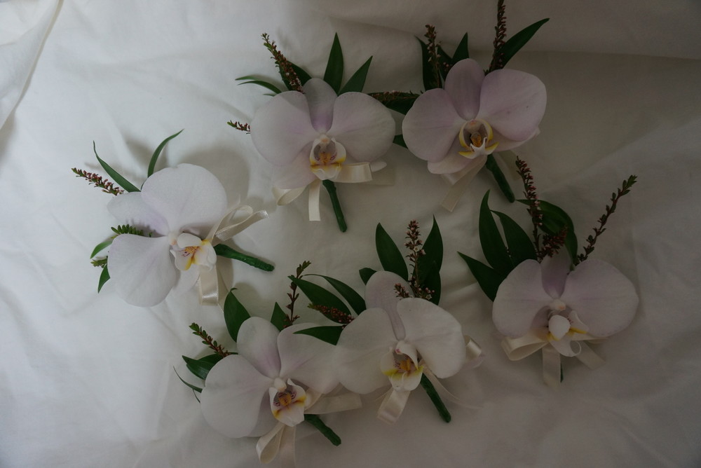 미니호접난과 그린소재를 살짝 믹스한 코사지입니다.