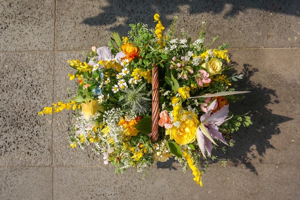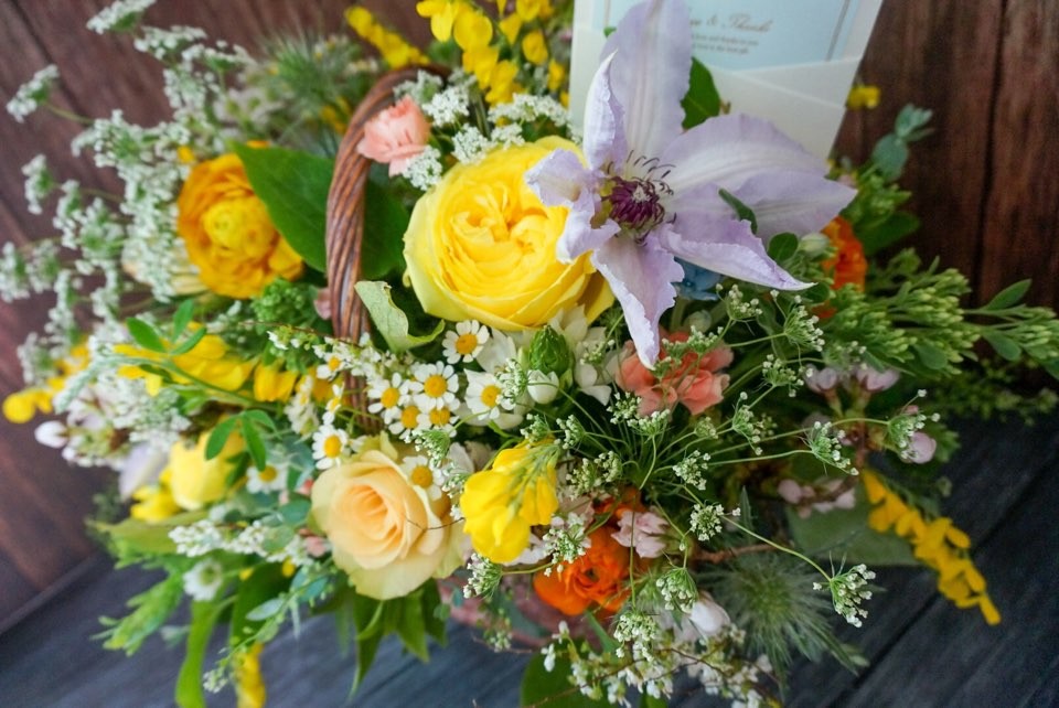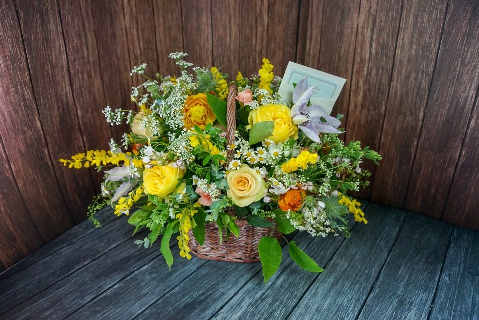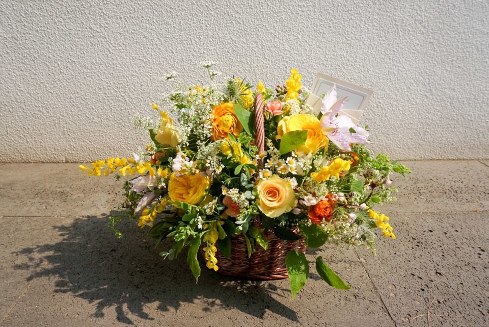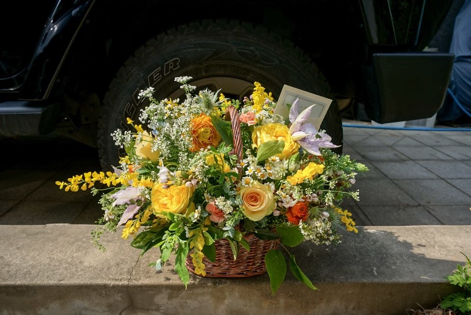 친구분의 생일날 보내신 꽃바구니입니다^^ 받는 분께서 잔잔한 꽃들을 좋아하신다고 하여 필러로 들꽃느낌이 나는 종류를 넣어주었습니다.