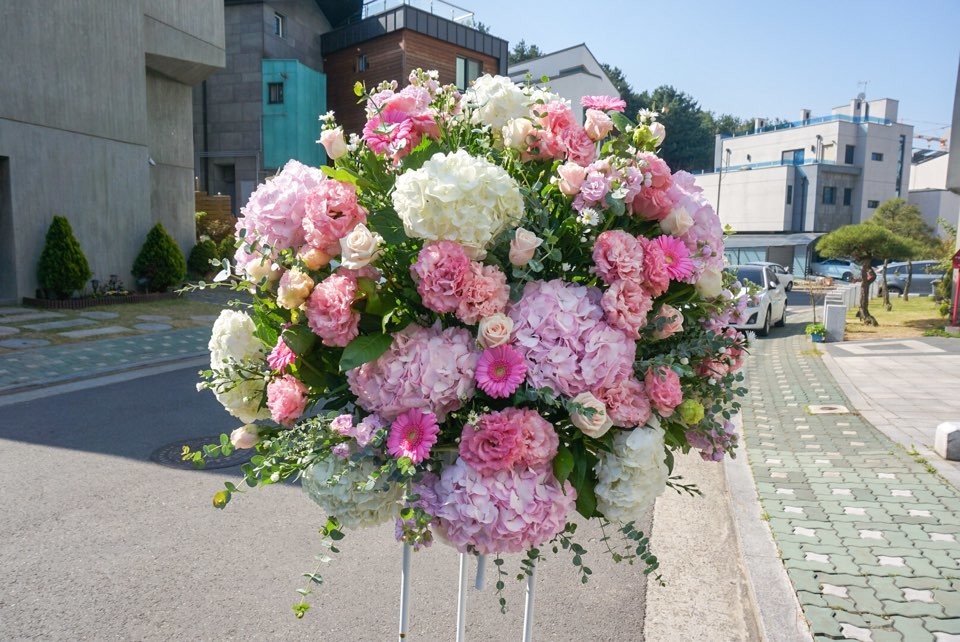 - 주요 꽃 : 화이트수국, 핑크수국, 핑크 리시안셔스 등