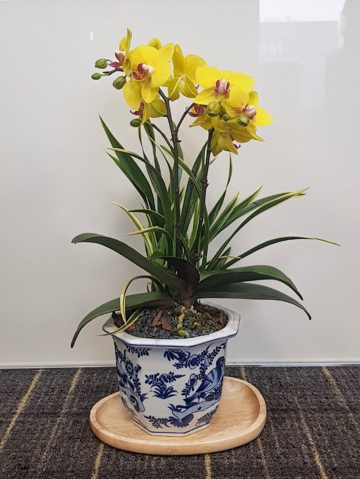 노란색상의 미니서양난으로, 탁상위에 올려두실 수 있는 미니 사이즈입니다.