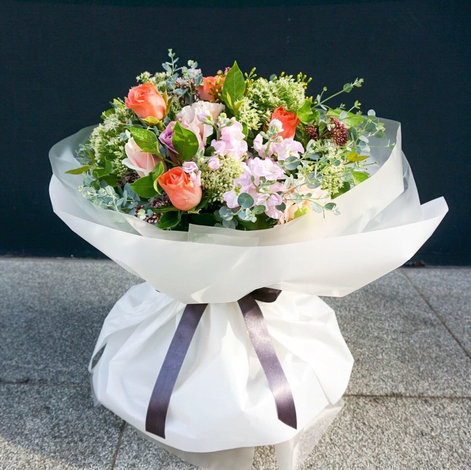 - 꽃 종류 : 오렌지 장미, 보라 장미, 연핑크 스토크 등