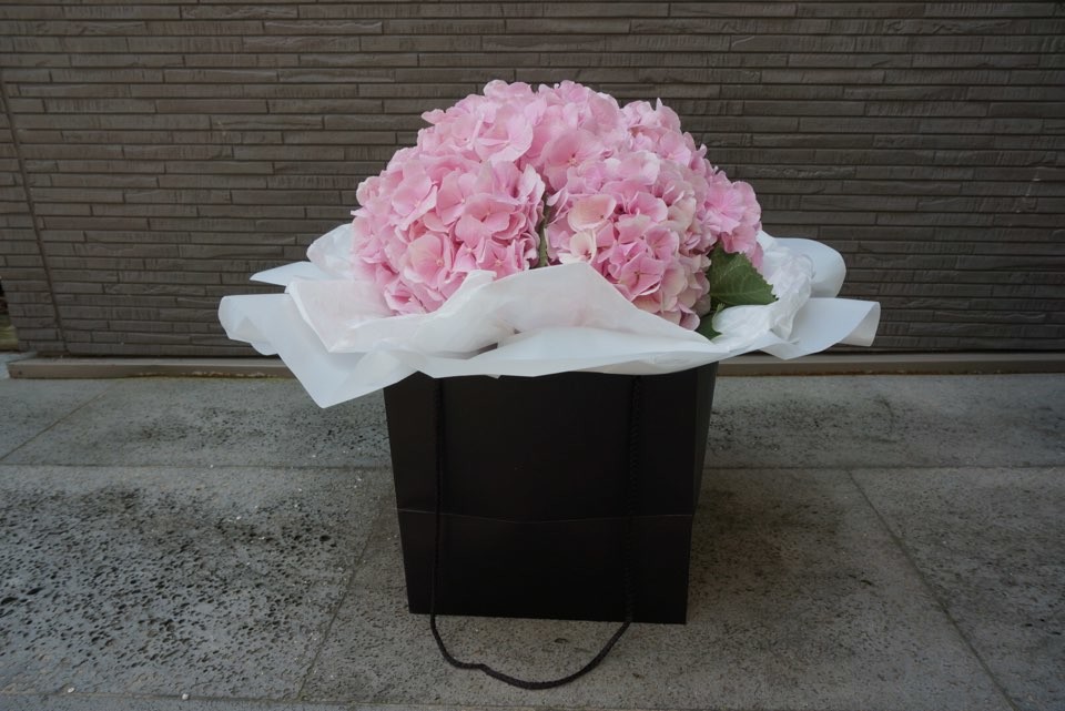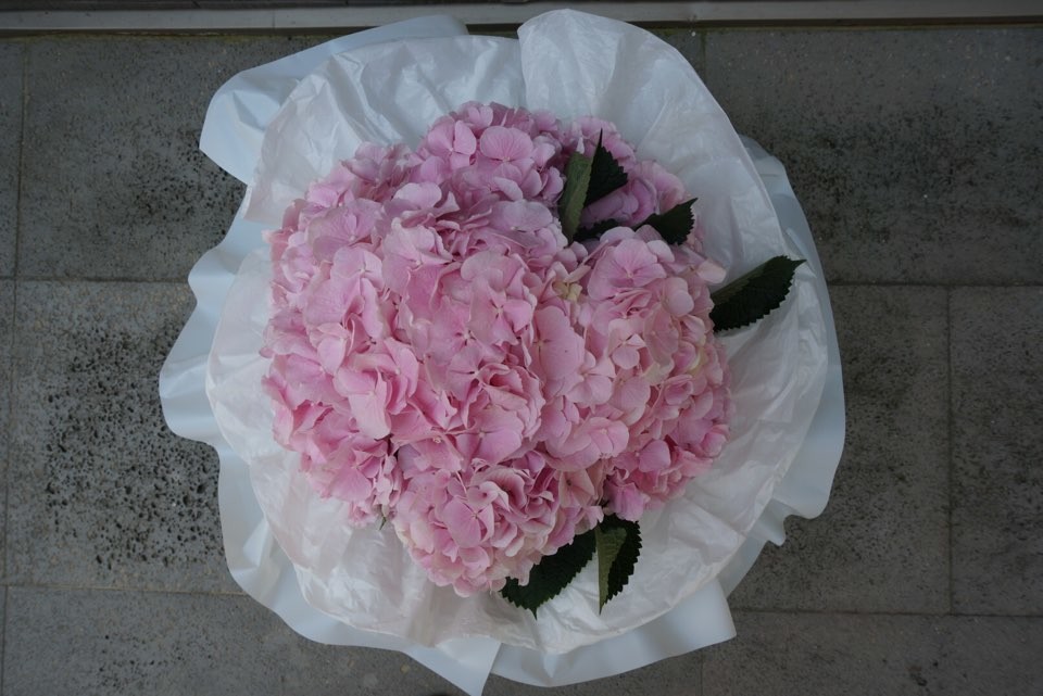 여리여리 연핑크 색상의 수국으로만 만들어진 꽃다발입니다.