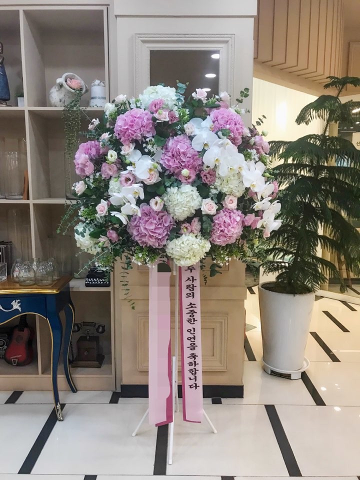- 주요 꽃 : 화이트수국, 핑크수국, 연핑크장미, 리시안셔스 등
